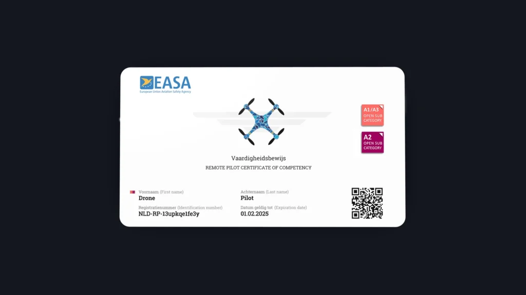 - Bestuurders moeten, afhankelijk van gewicht en categorie, een EU-drone-bewijs (theoriecertificaat) hebben.